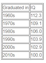 consider the most recent decade, where the drop in IQ is now 2.9. This is a